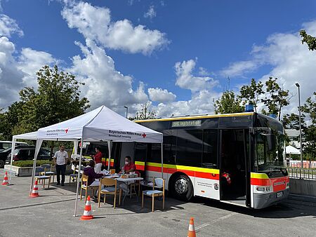 Zum Start der bundesweiten Impfaktionswoche #HierWirdGeimpft unterstützt die BRK Bereitschaft Ismaning mit der Bereitstellung des Betreuungs-Großraumrettungswagen die Sonderimpfaktion vor dem Riesenrad Umadum in München, zu der auch Bayerns Gesundheitsminister Klaus Holetschek kam, um noch einmal fürs Impfen zu werben.