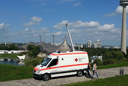 Das Münchner Rote Kreuz war entlang der Laufstrecke und im Start-/Zielbereich mit 15 ehrenamtlichen Helfer*innen und einem Notarzt präsent, um im Notfall schnell Erste Hilfe leisten zu können. Fünf Fahrzeuge dienten dabei als mobile Sanitätsstationen.