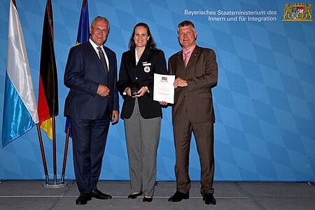 "Ehrenamt schafft Sicherheit!" unter diesem Motto luden der Bayerische Staatsminister für Inneres und Integration Joachim Herrmann und der Vorsitzende des Vereins "Münchner Blaulicht e.V." Christian Wies in den Max-Josef-Saal der Münchner Residenz ein. Bensonders engagierte Ehrenamtliche aus ganz Bayern wurden mit der Medaille "Ehrenamt schafft Sicherheit" ausgezeichnet. Wir gratulieren unseren Kolleginnen Manuela Harlander und Bettina Nürnberger ganz herzlich zu dieser besonderen Ehrung!