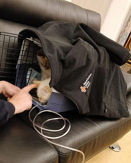 Die von den Besitzern mit der Versorgung von Snowy & Balou betrauten Freunde der Familie begleiteten den Vorgang und sorgen weiterhin für das wohlergehen der beiden. In Abstimmung mit einer Tierärztin wurden die beiden durch unsere Helfer noch mit Sauerstoff versorgt und aufgepäppelt.