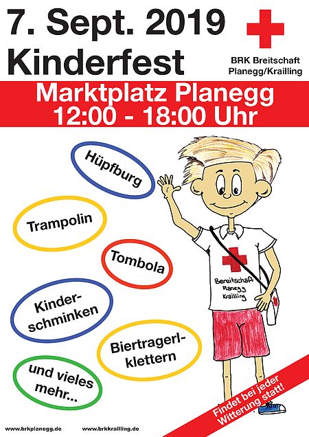 Am 7. September findet von 12 bis 18 Uhr auf dem Marktplatz in Planegg das Kinderfest des Roten Kreuzes statt.