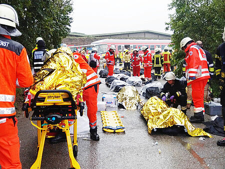 Der Landkreis München führte am 8. September eine große Katastrophenschutzübung mit dem Titel "DarkEX" durch, an der rund 450 Einsatzkräfte der Hilfsorganisationen, der Feuerwehren, der Polizei sowie privater Rettungsdienste teilnahmen.